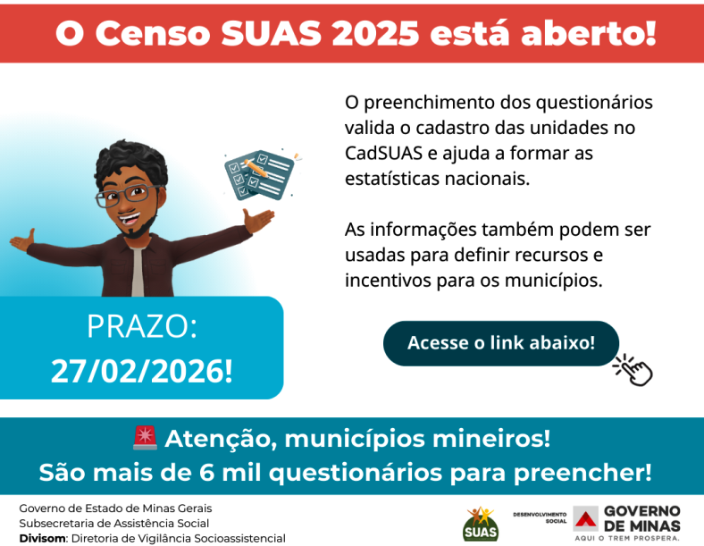 Quanto aos preços, dado essencial para o planejamento social dos municípios, o IPCA fechou 2025 com alta acumulada de 4,26% (dentro do teto da meta). A cesta básica em Belo Horizonte apresentou alta de 1,68% em dezembro, mas é importante notar que acumulou queda de 0,70% no ano de 2025.