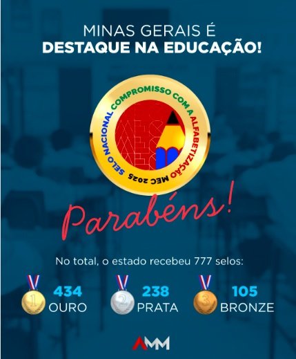 O Ministério da Educação (MEC) divulgou os resultados do Selo Nacional Compromisso com a Alfabetização – Edição 2025, um reconhecimento a esforços e iniciativas das secretarias de Educação na formulação e implementação de políticas, programas e estratégias que assegurem o direito à alfabetização das crianças. Em Minas Gerais, 434 redes receberam a certificação do Selo Ouro, 238 o selo prata e 105 o selo bronze.