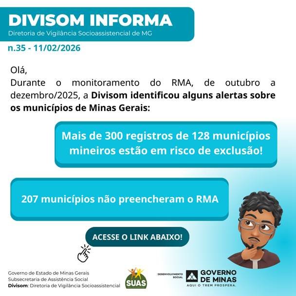 O Plano de Serviços do Piso Mineiro de Assistência Social do exercício de 2026 foi disponibilizado para preenchimento pelo gestor do Fundo Municipal de Assistência Social (FMAS) e para deliberação do Conselho Municipal de Assistência Social (CMAS) no sistema SIGCON-MG – Módulo Saída. E deverá ser preenchido pela gestão municipal e aprovado pelo CMAS até 5 de abril de 2026.