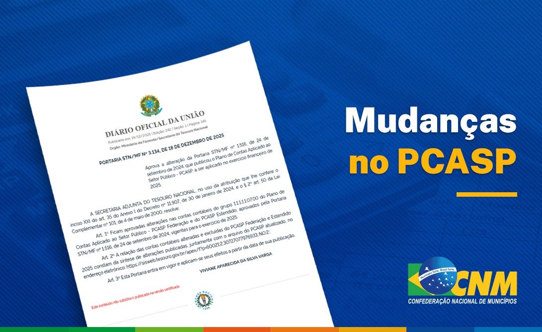 A Secretaria do Tesouro Nacional (STN) republicou o Plano de Contas Aplicado ao Setor Público (PCASP) para os exercícios de 2025 e 2026, por meio das Portarias STN/MF 3.133 e 3.134, ambas de 18 de dezembro de 2025. Os gestores e as equipes contábeis municipais devem fazer uma análise cuidadosa das mudanças, avaliando eventuais impactos nos sistemas contábeis, rotinas de registro e processos de encerramento do exercício.